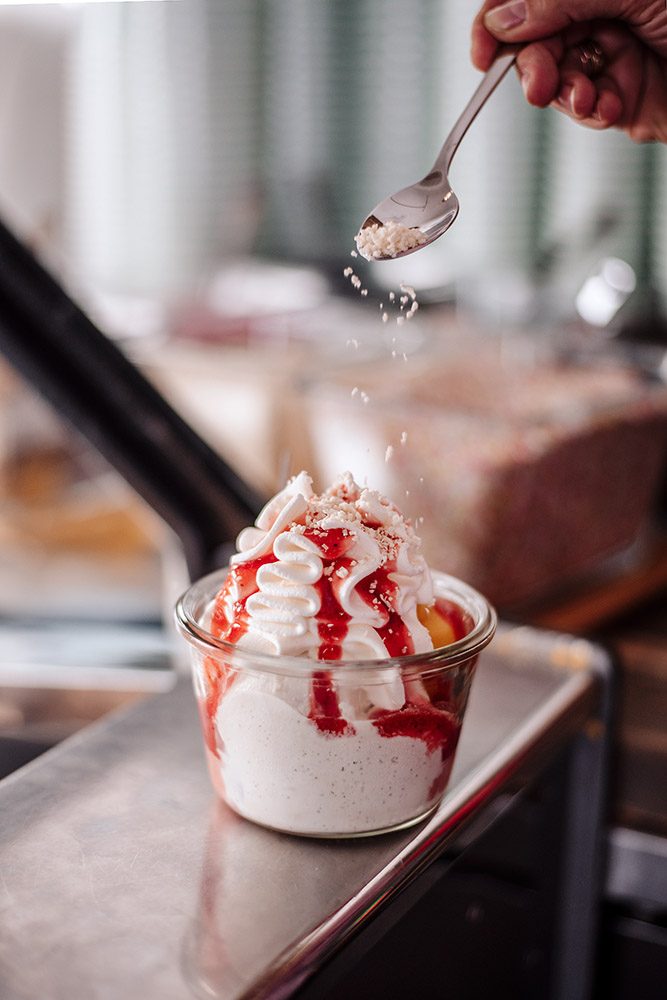 Für diese Shooting in einer Eisdiele habe ich die Räumlichkeiten, die Unternehmerin und den Herstellungsprozeß des Eises fotografiert- alles mit dem besonderen Augenmerk auf Stimmung und Atmosphäre. So entsteht eine visuelle Geschichte, die Lust auf die Eisdiele macht und sowohl für Website und Social-Media ideal ist.